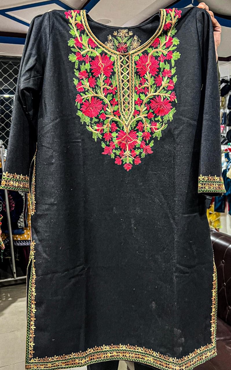 Elevate your elegance with this stunning maroon tunic, a beautiful homage to the timeless artistry of Kashmir. This piece captures the essence of traditional South Asian sophistication, making it an ideal choice for any occasion where you want to make a statement.